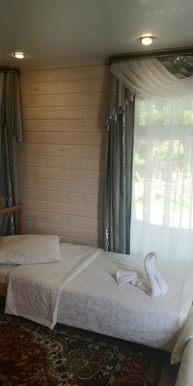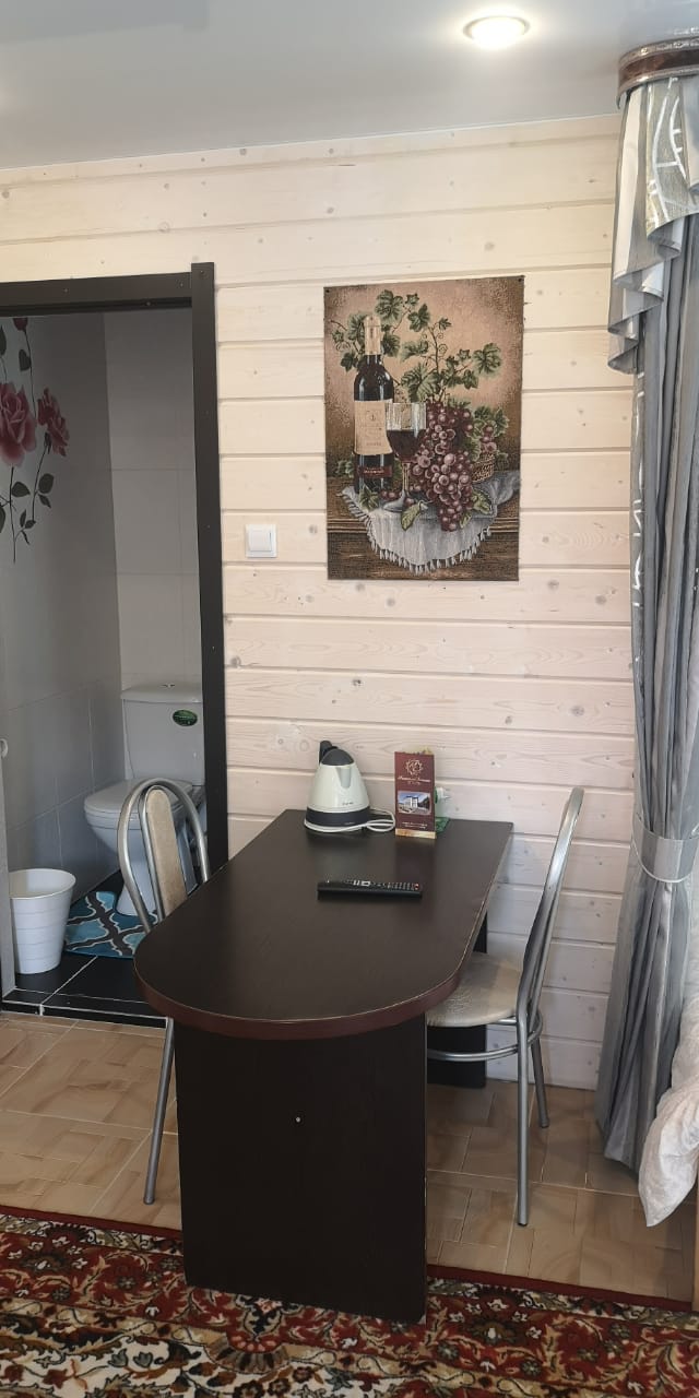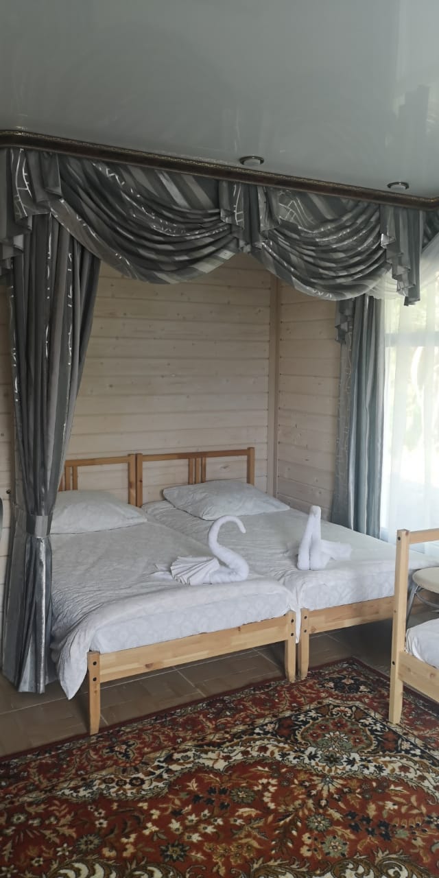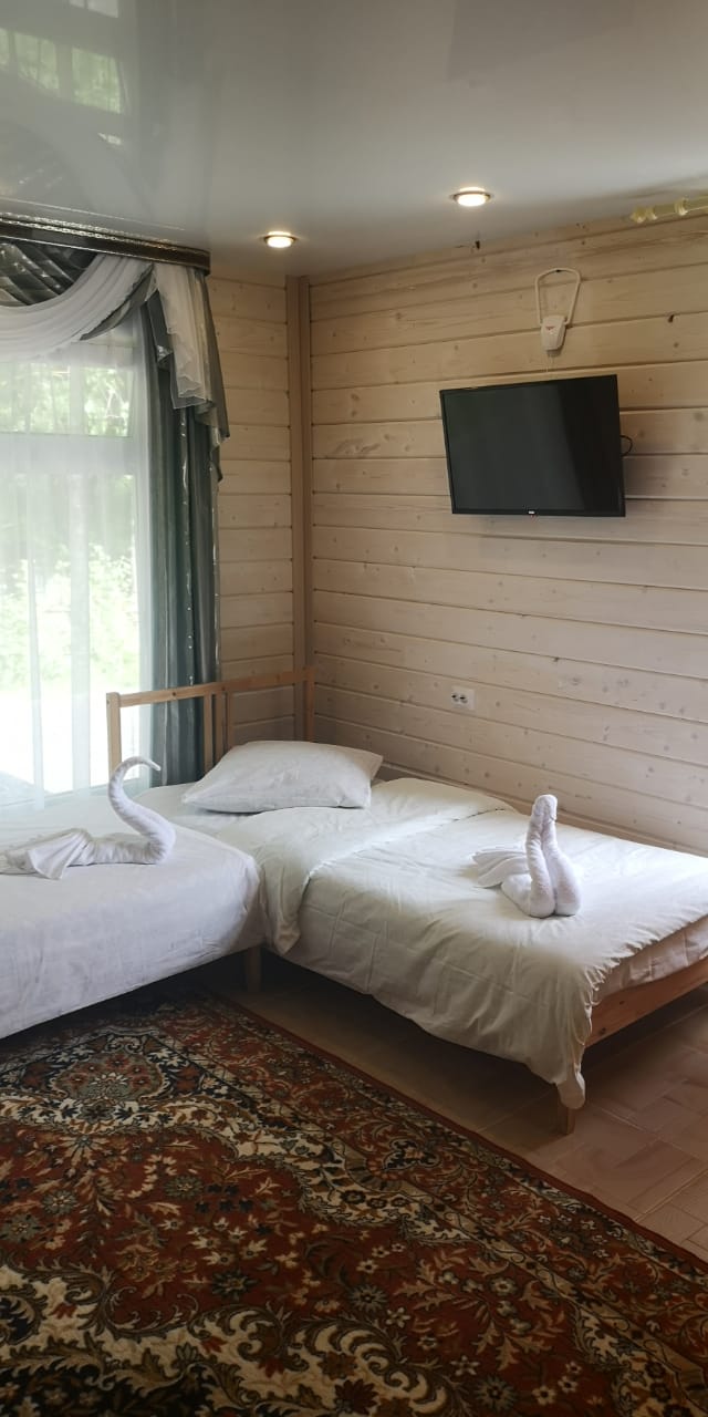 Двухместный номер , две полутораспальный кровати , телевизор , с выходом на улицу , душ и туалет в номере . Полы с подогревом .