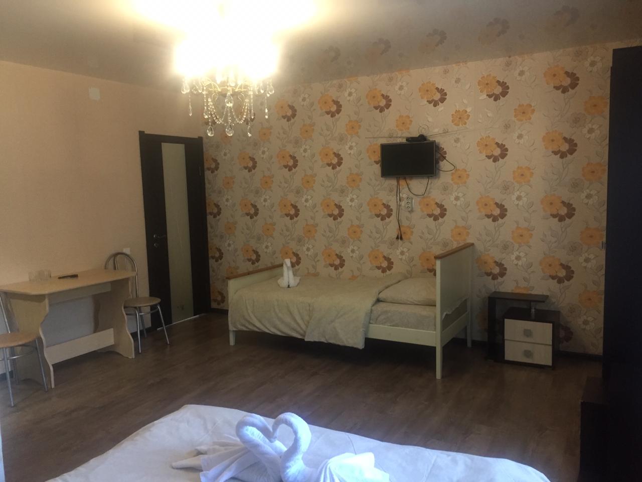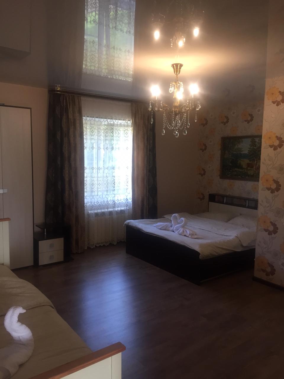 В номере : 2-х спальная кровать- 1 шт, 1,5 спальная кровать- 2 шт, шкаф, тумбочки прикроватные, телевизор, душ, туалет, полотенца, шампунь, гель для душа, фен) .